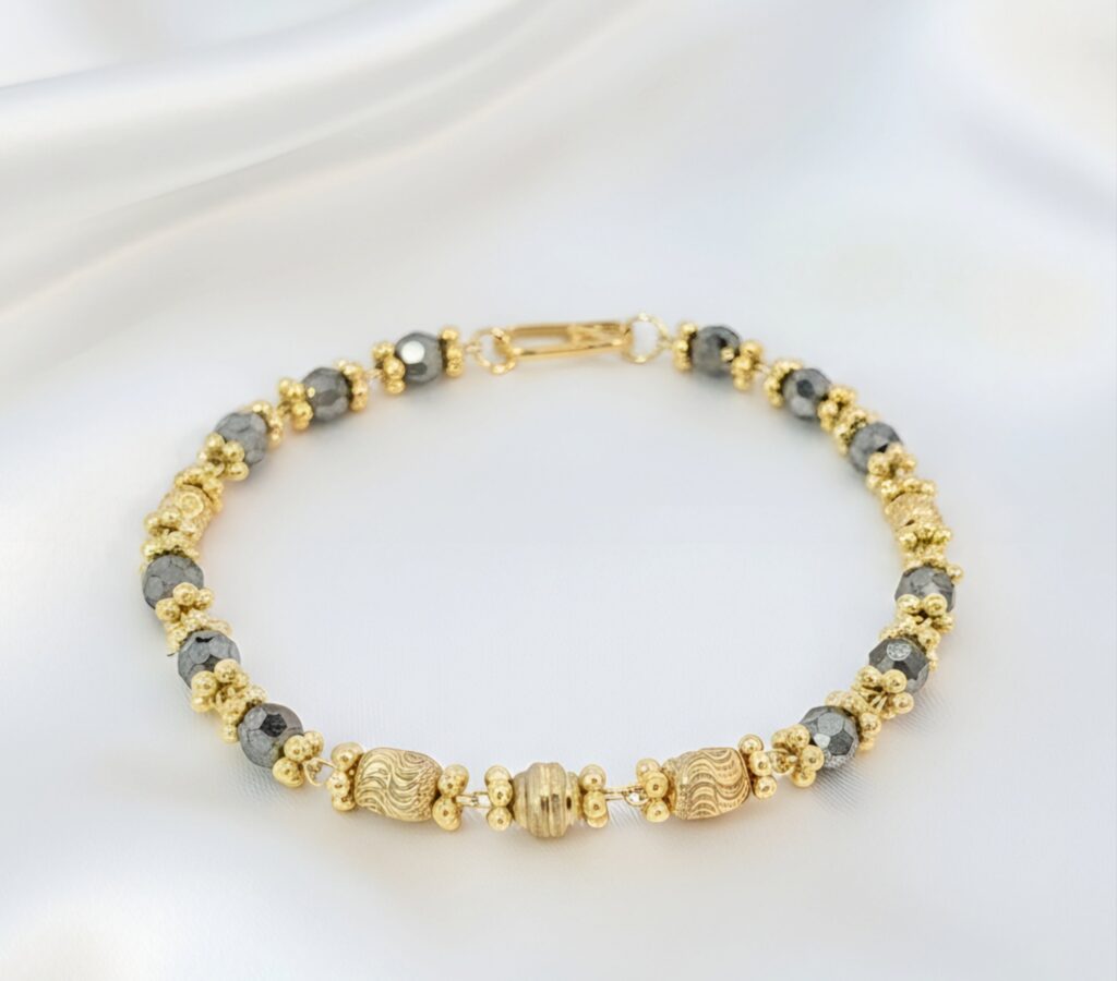 Grey Bead Two-Tone Mangalsutra Handchain[UV6]