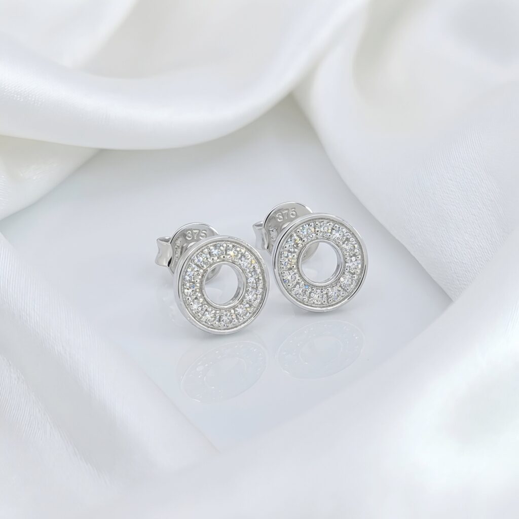 Round Pave Circle White Gold Diamond Studs