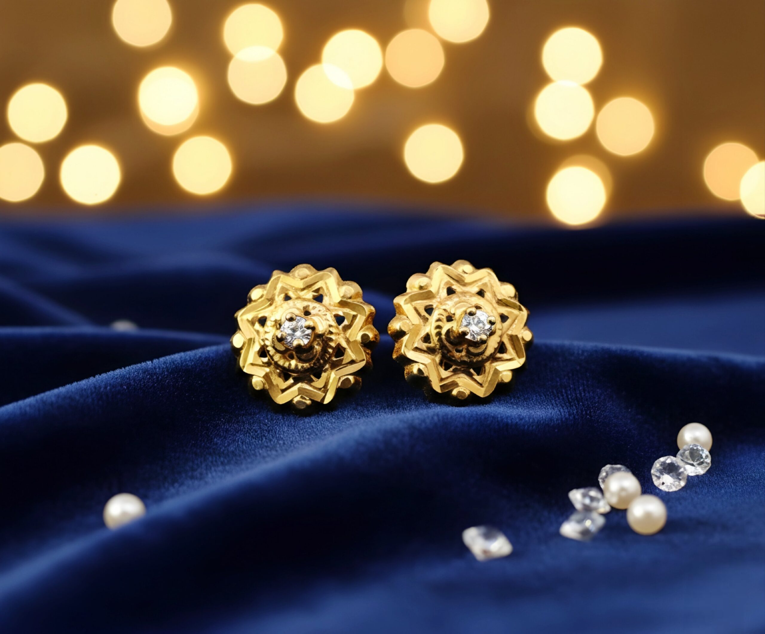 Cubic Zirconia Flower Stud Earrings(No.90)