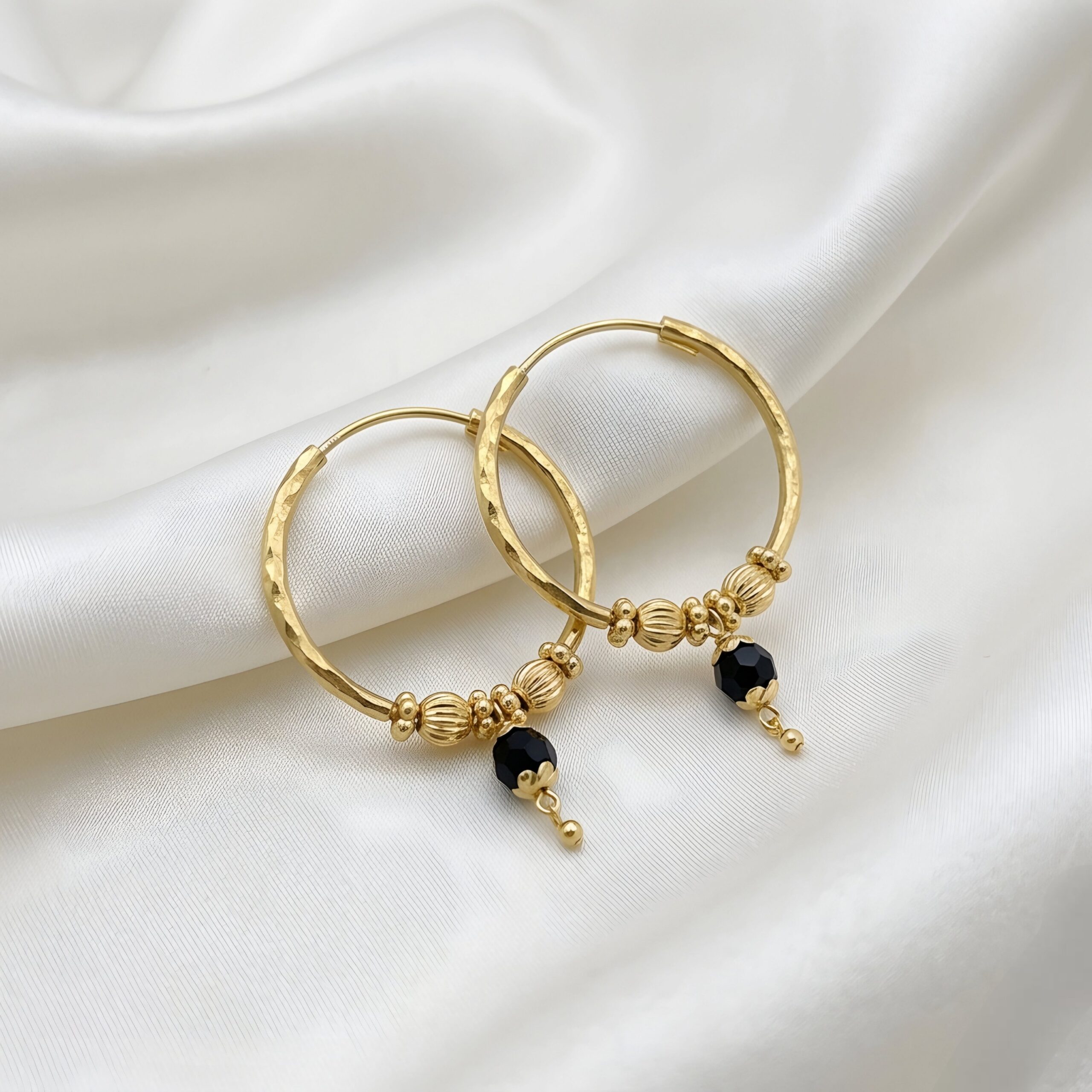 Faceted Black Bead Drop Hoop[No.36]