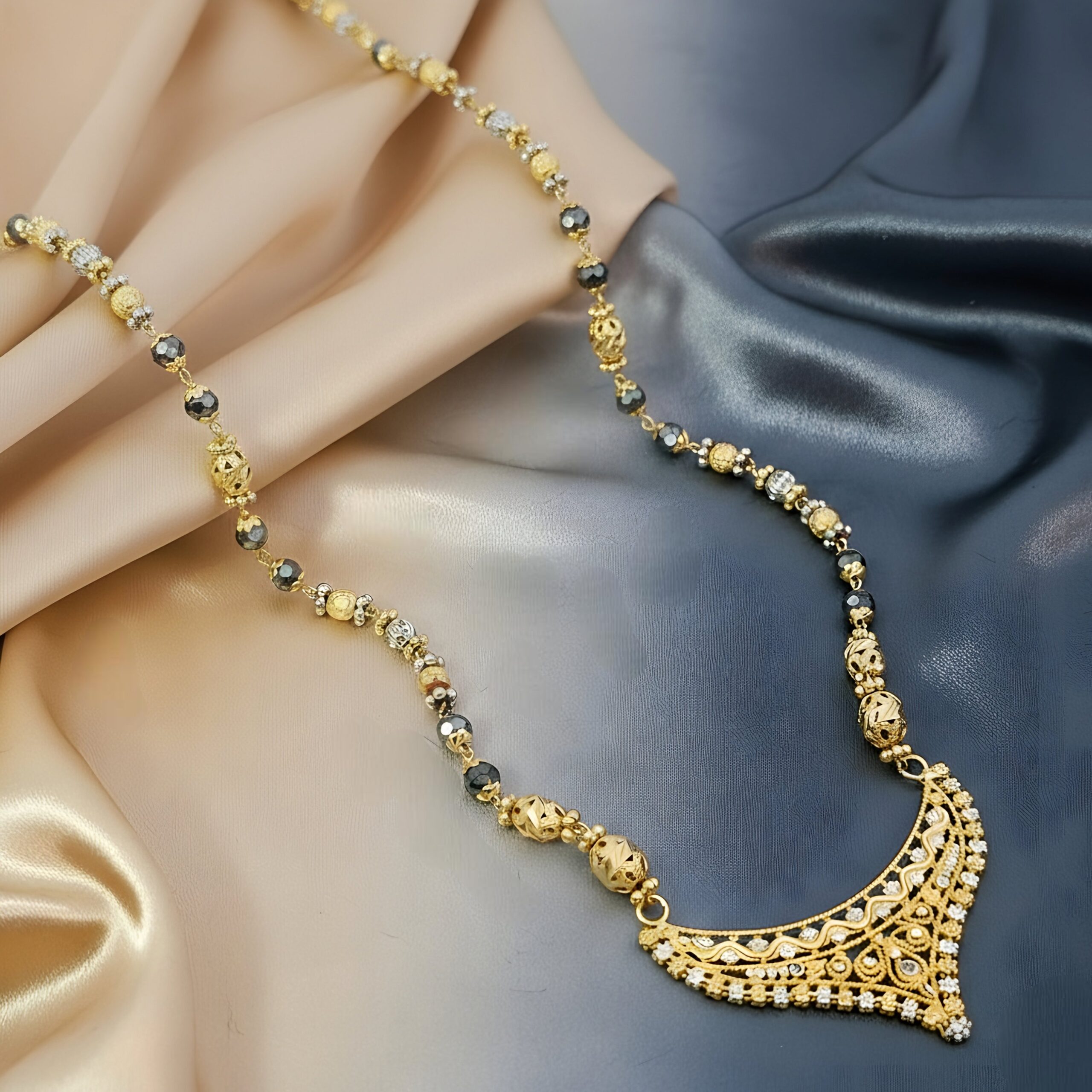 Stunning Two-Tone Grey Bead Mangalsutra With Filigree Pendant