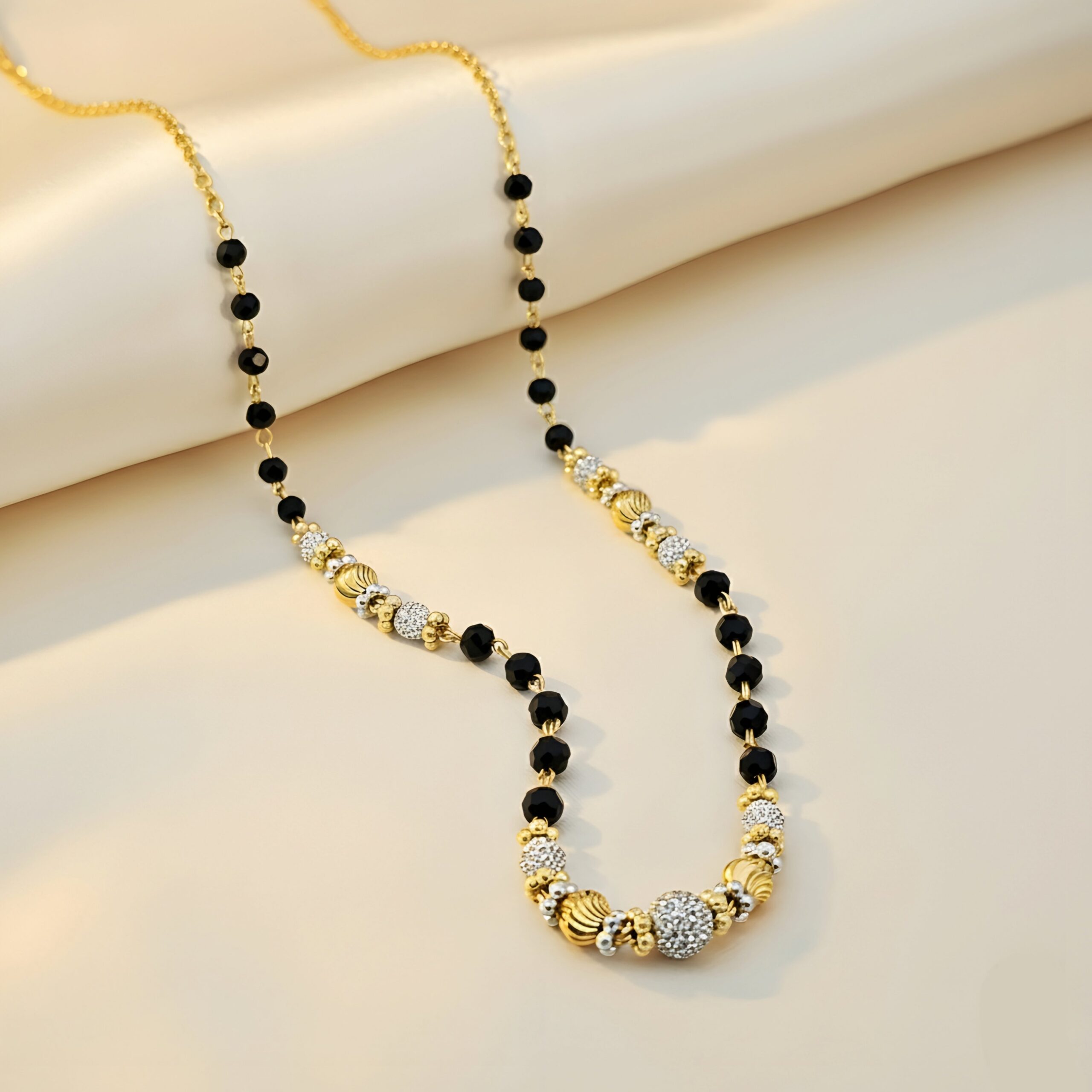 Two-Tone Black Bead Half-Chain Mangalsutra[DL63]
