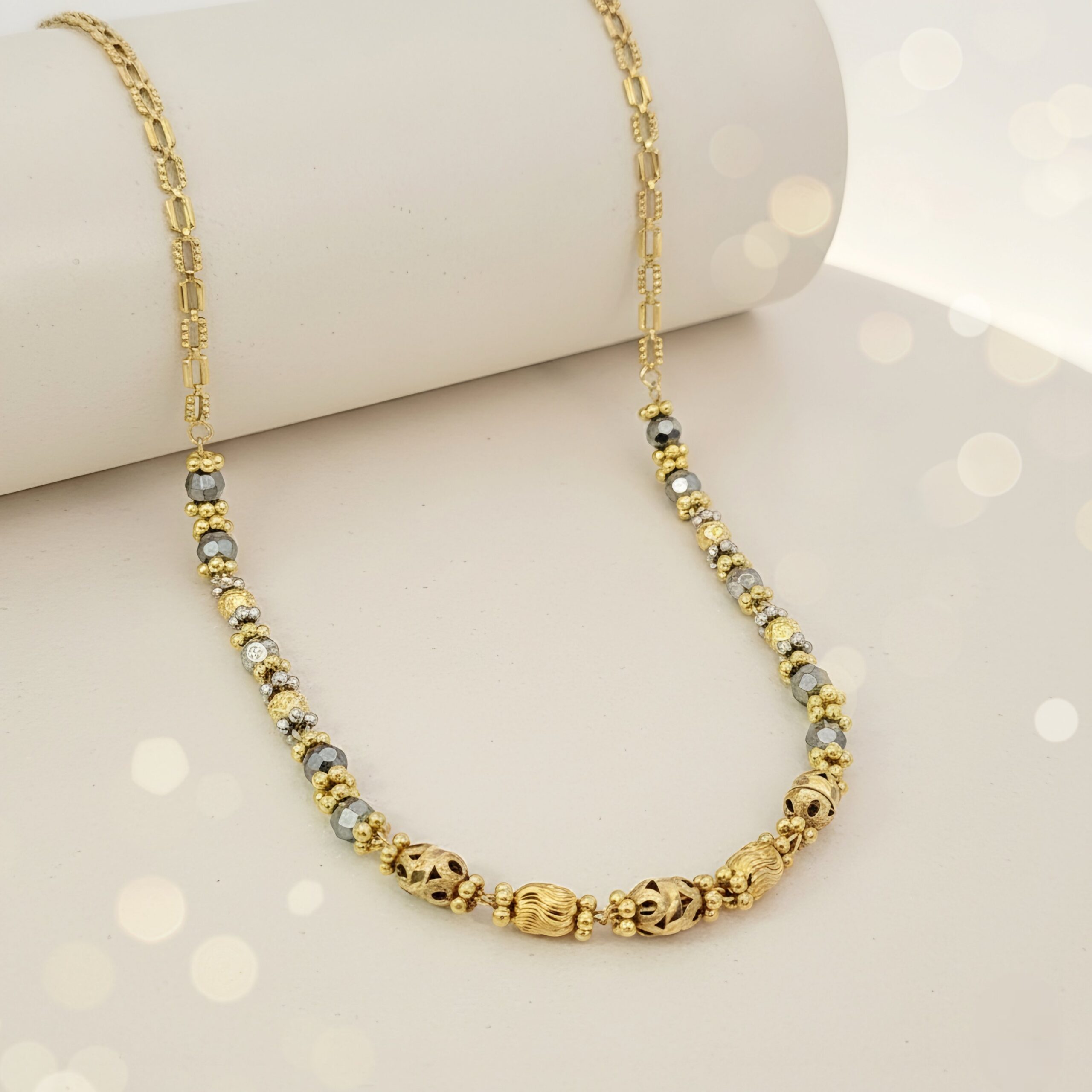 Two-Tone Half-Chain Grey Bead Mangalsutra[DL38]